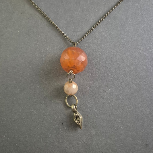 Antike Silberkette mit facettiertem Karneol-Anhänger und Münzdetail