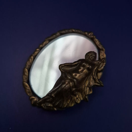 Antike Spiegel Brosche mit Frauenfigur – Nostalgischer Vintage-Charme