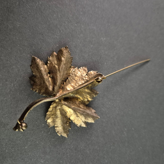 Antike Silberbrosche in Blattform – Fein detailliertes Naturdesign