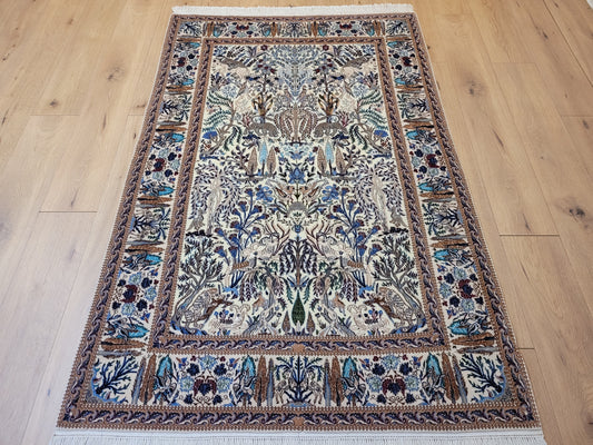 Nain Teppich 200x175 cm feine Korkwolle mit Seide Jagdmotiv