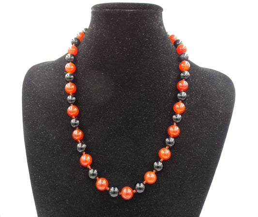 Natürliche 8 mm rote Jaspis- und schwarze Onyx-Perlenkette