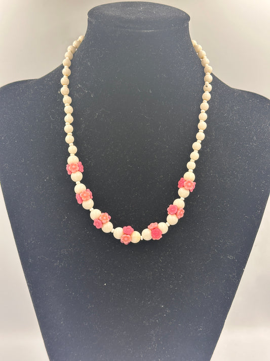 Nana Collier Perlenkette mit rosa Rosen und goldfarbenem Verschluss