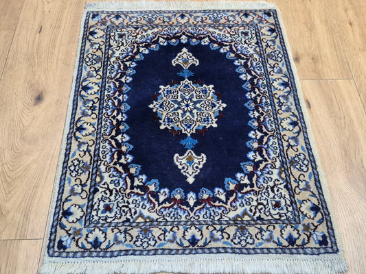 Nain Teppich Wolle mit Seide Medaillon Blau fein