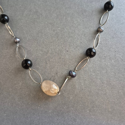 Naturstein-Halskette in Beige, Schwarz & Grau