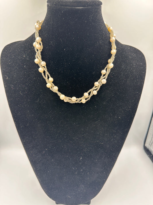 Natürliche Süßwasser Perlenkette - Mehrsträngig mit 925er Silberverschluss