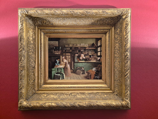 Ölgemälde Biedermeier Deutsche Schule (XX) Handsigniert Bücherei