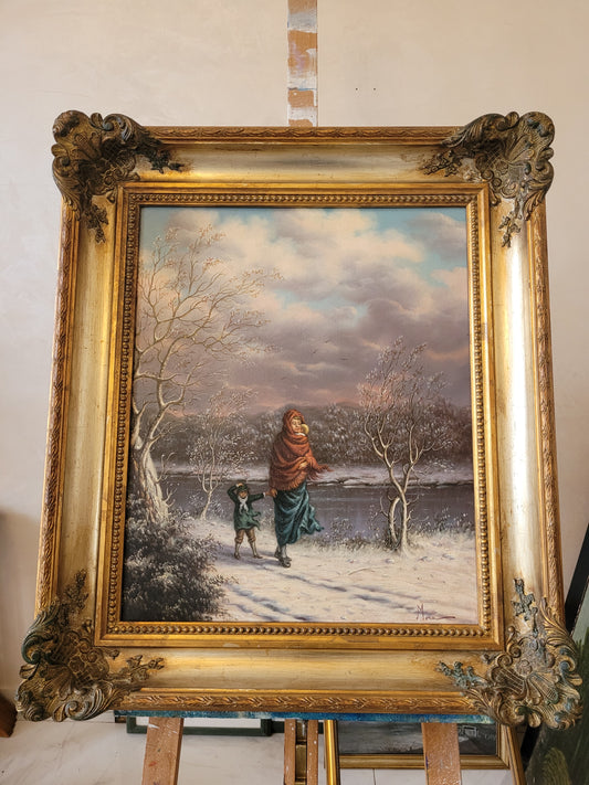 Ölgemälde Gemälde Winterlandschaft Europäische Schule (XX) Handsigniert