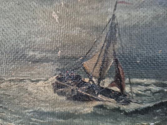 Ölgemälde Handsigniert Seestück Fischerboote Deutsche Schule (XX)