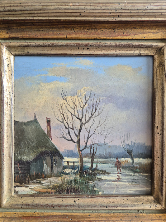 Ölgemälde Gemälde Winterlandschaft Europäische Schule (XX) Signiert