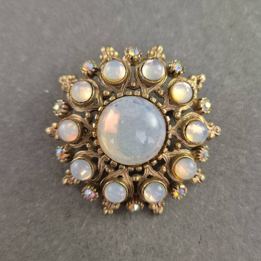 Opalähnliche Vintage-Brosche – Antikgold mit Glascabochons