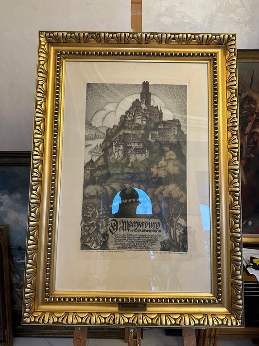 Original Kupferradierung Marksburg am Rhein Handsigniert Verlag Grunewald