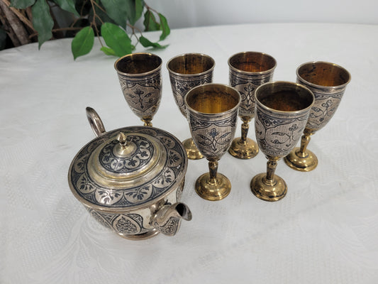 Osteuropäische Meistermarke, 875er Silber, Innen vergoldet Teeservice