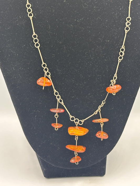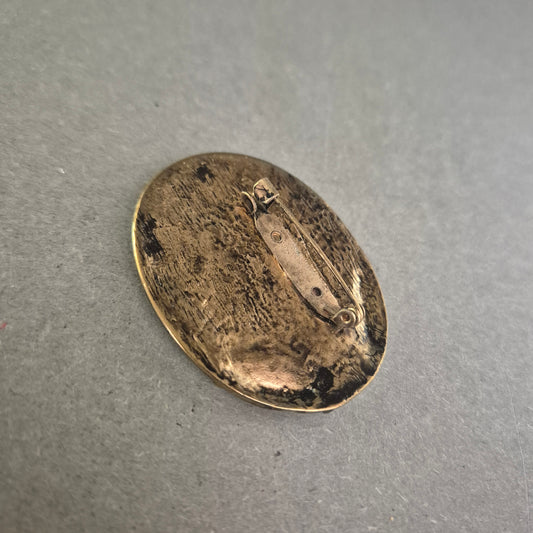 Ovalbrosche im Retro-Look mit floraler Musterung in Braun-Orange