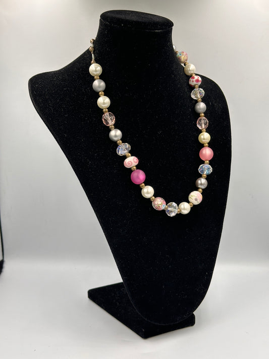 Perlenkette Creme Grau mit silberfarbenen Akzenten