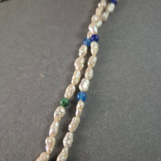 Perlen Kette mit blauen Edelstein Akzenten – Elegant und edel