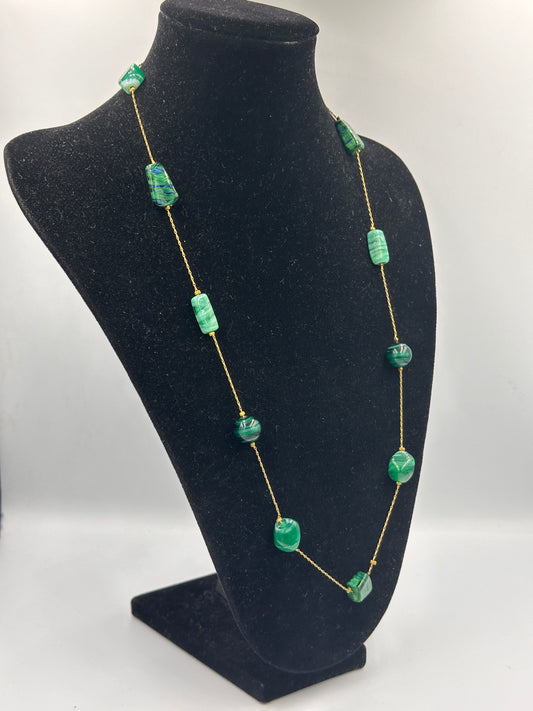 Sehr Schicke Vergoldete Halskette mit Malachitsteinen