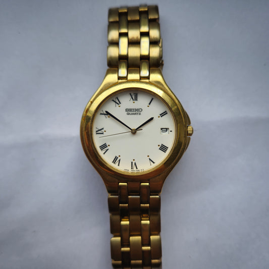 SEIKO Herrenarmbanduhr in Goldoptik Zeitloses Design mit römischen Ziffern