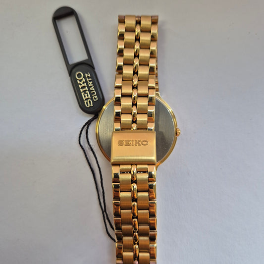 Seiko Herrenarmbanduhr – Klassisches Gold-Design mit Schwarzem Zifferblatt