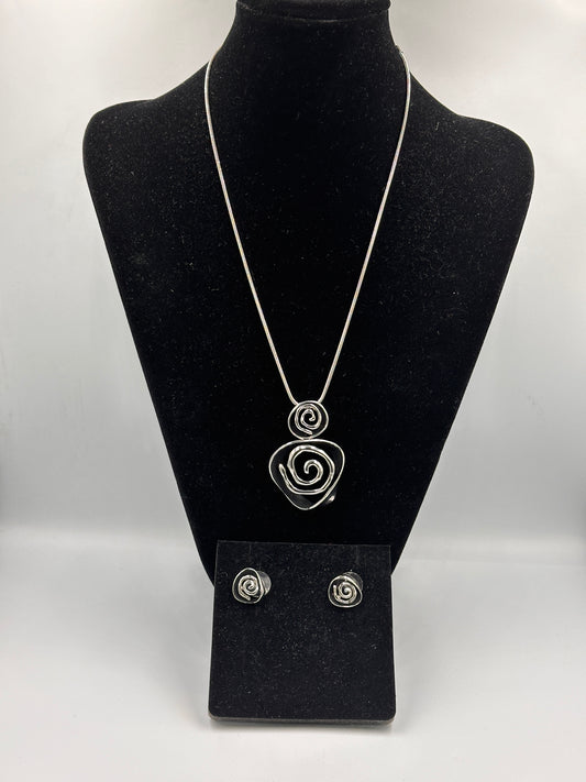Seilkette mit Spiralwirbel-Anhänger und Ohrringen