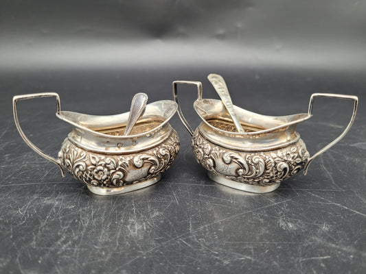 Set 2 Milchkännchen Sterling Silber 925 mit Löffeln britische Meistermarke