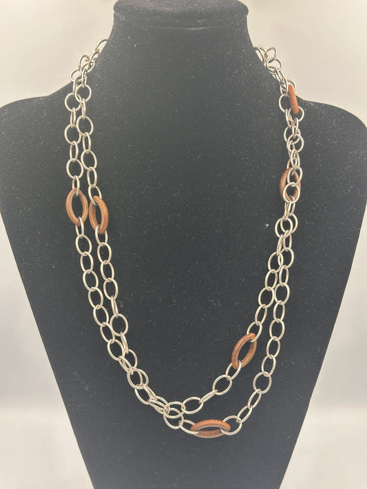 Silber (ungestempelt) Halskette mit Holz Akzenten