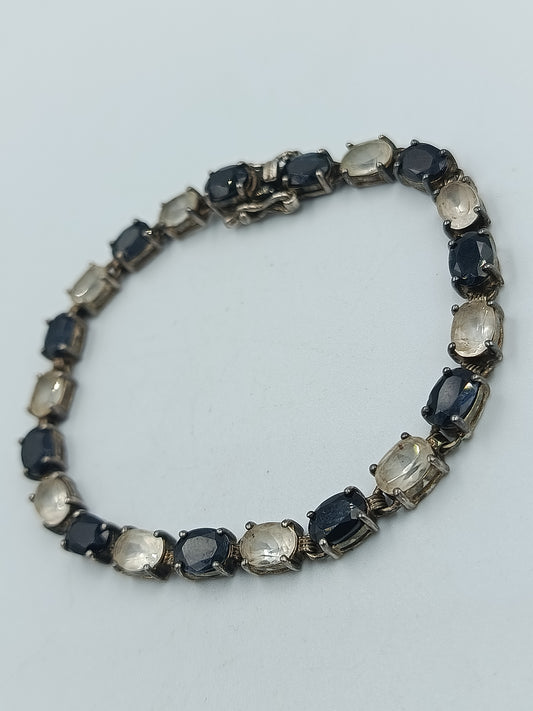 925 Silber Armband mit dunklen & hellen Schmucksteinen
