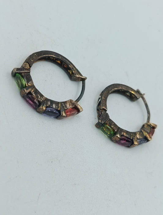 925 Silber Creolen mit bunten Steinen Vintage Stil