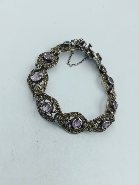 925 Silber Armband mit Amethyst und Markasiten Vintage Design