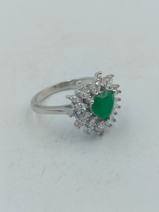 925 Silber Damenring Grüner Herzstein Zirkonia Kranz Gr54 Elegant Schmuck