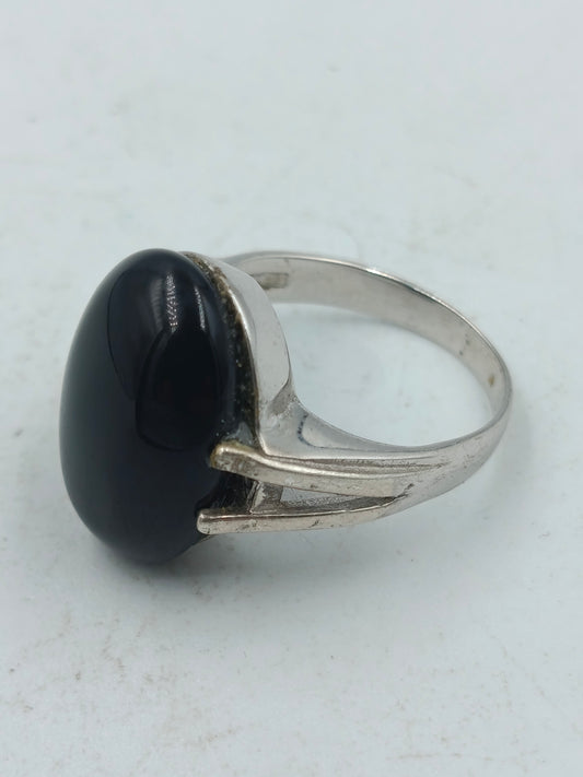 925 Silber Damenring mit Schwarzem Onyx Oval Gr54 Klassisch Elegant
