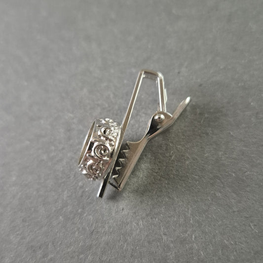 Silberfarbene Krawattenklammer mit filigraner Verzierung – Klassisches Design