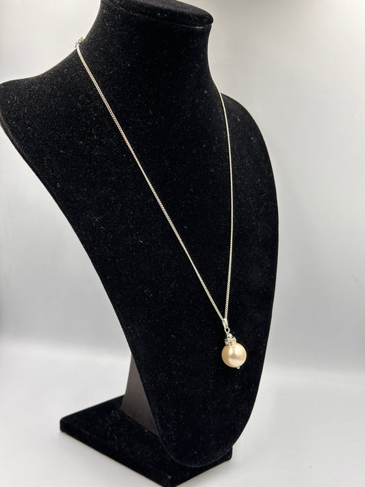 Silberfarbene Halskette mit Kugelanhänger und Zirkonia-Steinen