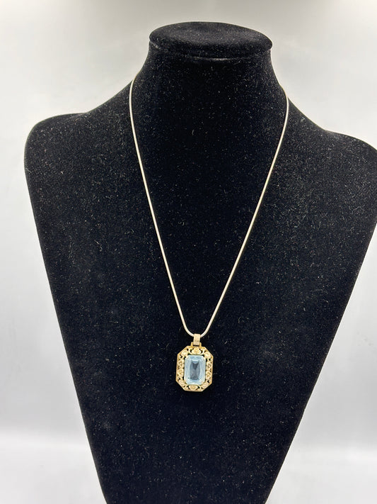Silberfarbene Seilkette mit Art-Deco-Anhänger und Aquamarin-Optik Stein