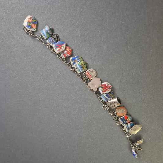 Silbernes Charivari-Armband mit Wappen-Anhängern – Sammlerstück