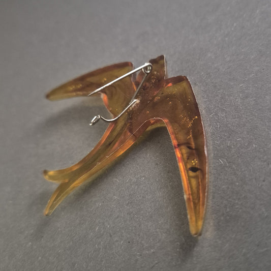 Vintage Bernstein-Brosche – Elegante Vogel-Form im Retro-Stil
