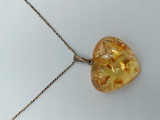 Vintage Bernstein-Herzanhänger mit langer Kette