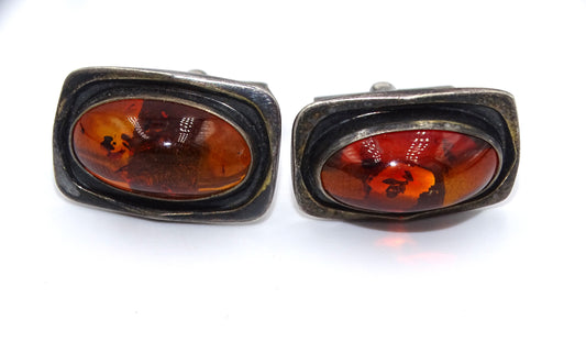 Art Deco 925er Silber Manschettenknöpfe mit Bernstein