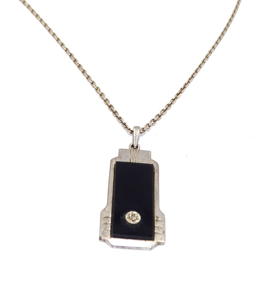 Art Deco - 830 Silber Anhänger mit Onyx und Silberkette