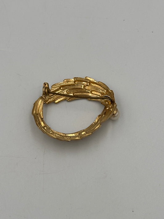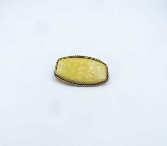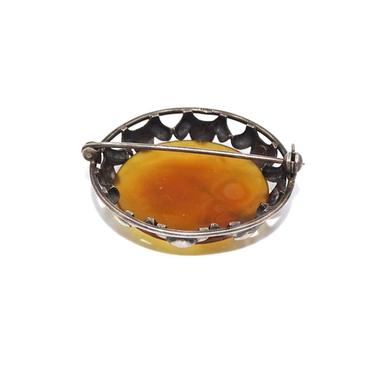 Art Deco Edwardian Achat-Cabochon Brosche aus goldfarbenem Metall