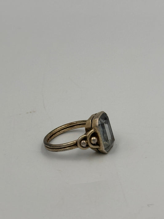 Art Deco 925 Silber Ring mit Blauem Edelstein – Größe 52