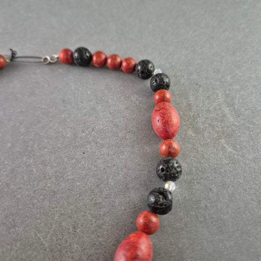 Auffällige Lavastein-Kette mit roten Perlen – Natur pur in Kontrastoptik