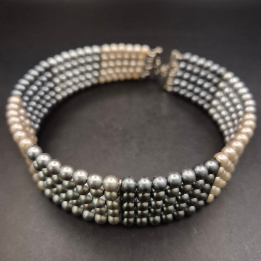 Auffällige Perlen Halskette in Schwarz-Weiß – Mehrreihiger Vintage-Stil