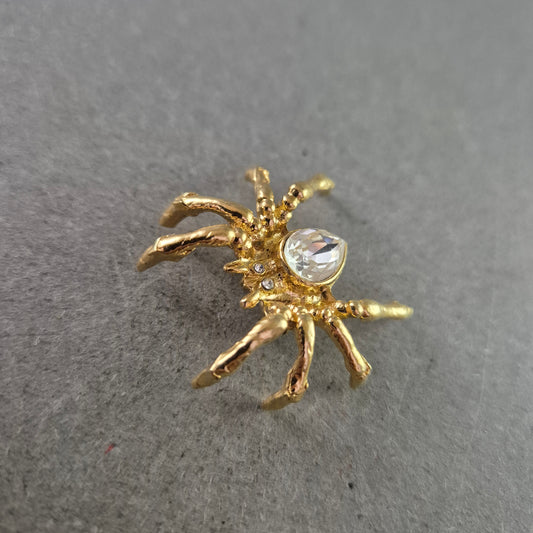 Auffällige Spinnen-Brosche in Goldoptik mit großem Strassstein
