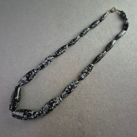 Auffällige Damen Halskette aus Schneeflockenobsidian – Naturstein-Look