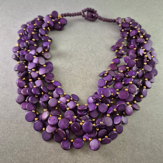 Auffällige Halskette mit violetten Scheibenperlen – Boho-Stil mit Charme