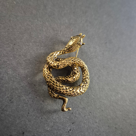 Auffällige Vintage-Schlangenbrosche – Vergoldetes Design mit Struktur