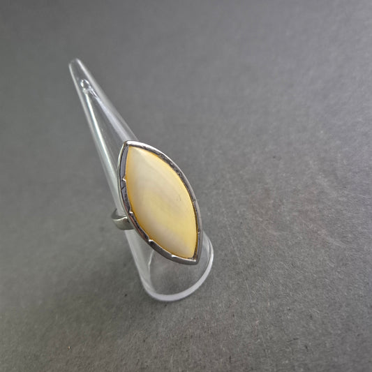 Auffälliger Damenring mit gelbem Kunststein in Marquiseform