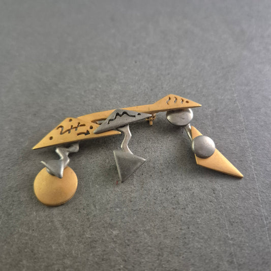 Ausgefallene Art-Deko Brosche mit geometrischen Anhängern