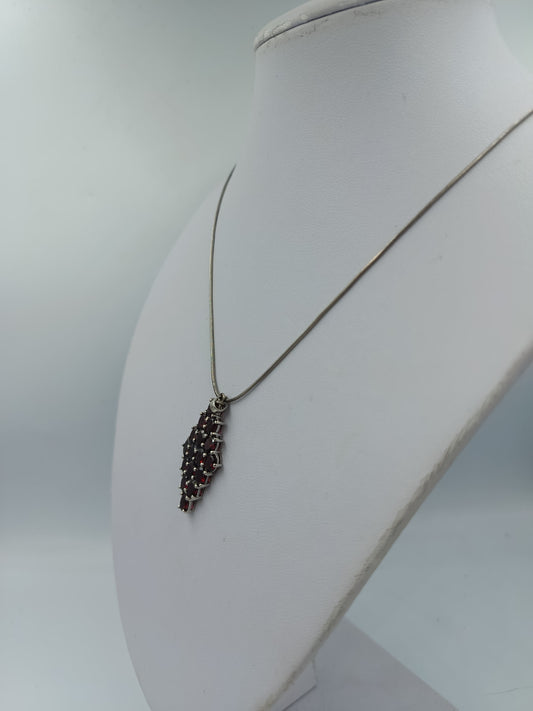 925 Silber Kette mit rotem Stein Anhänger Vintage Stil