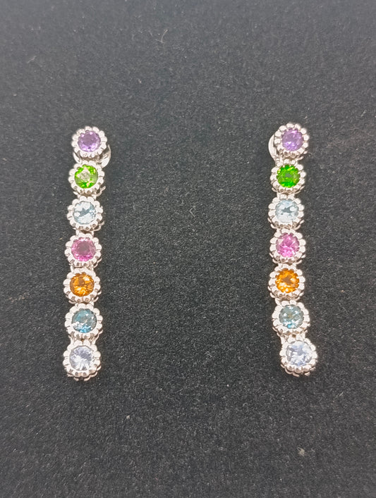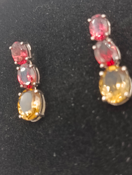 925 Silber Ohrringe mit roten und gelben Steinen elegant